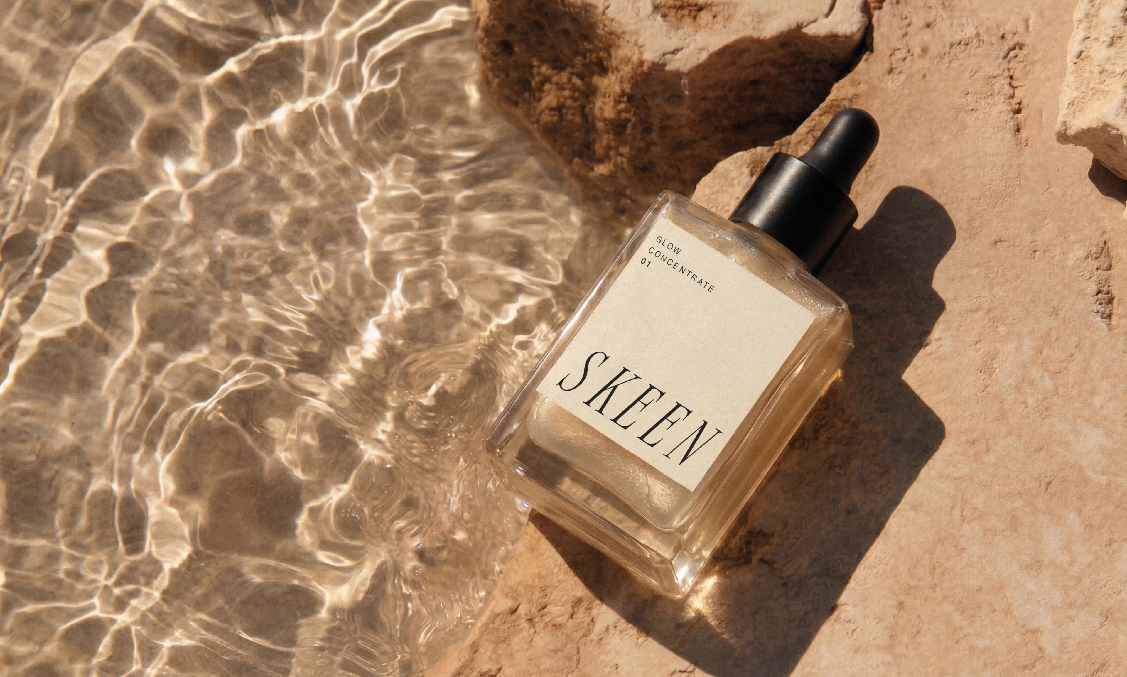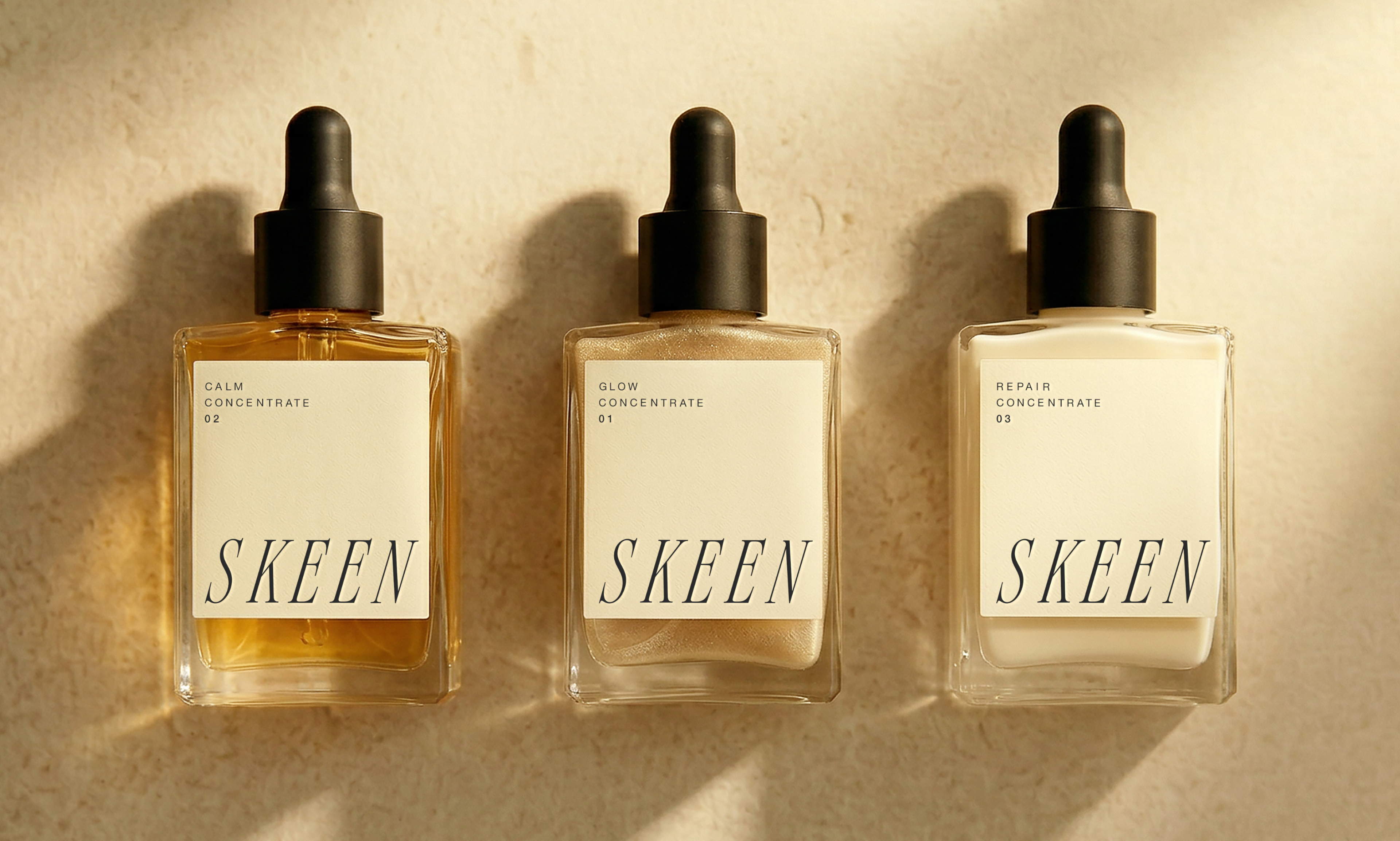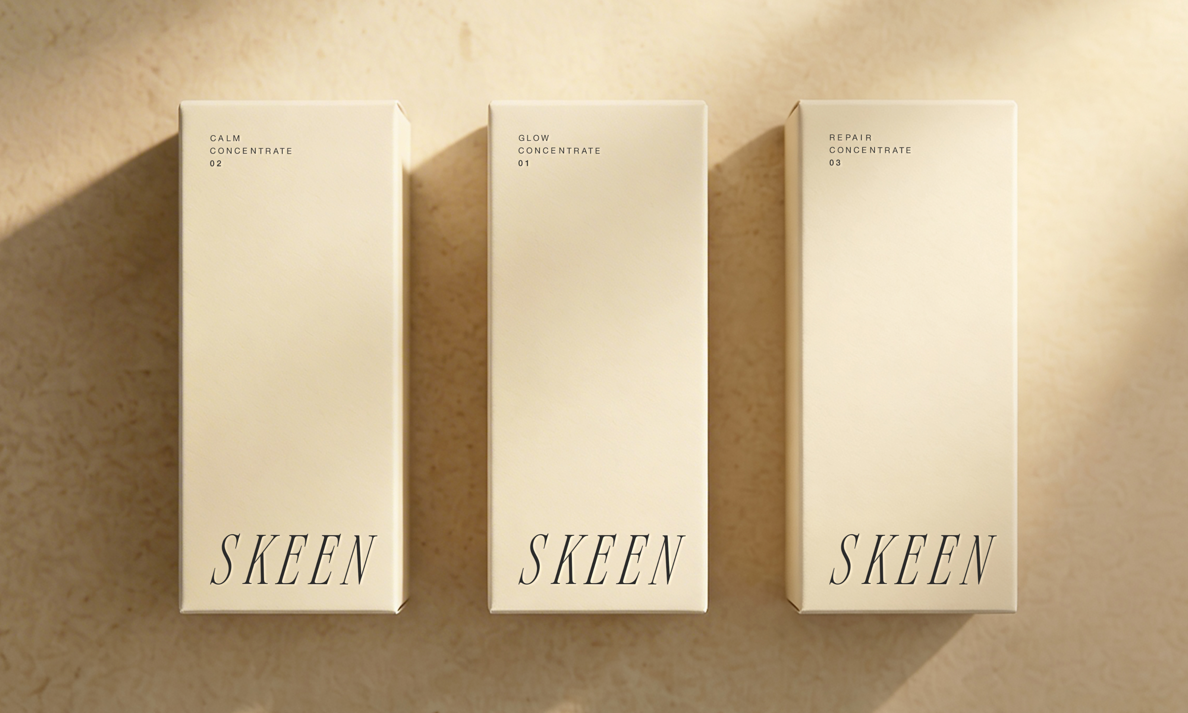 SKEEN es un proyecto de identidad visual para una marca de skincare premium inspirada en la costa mediterránea.
