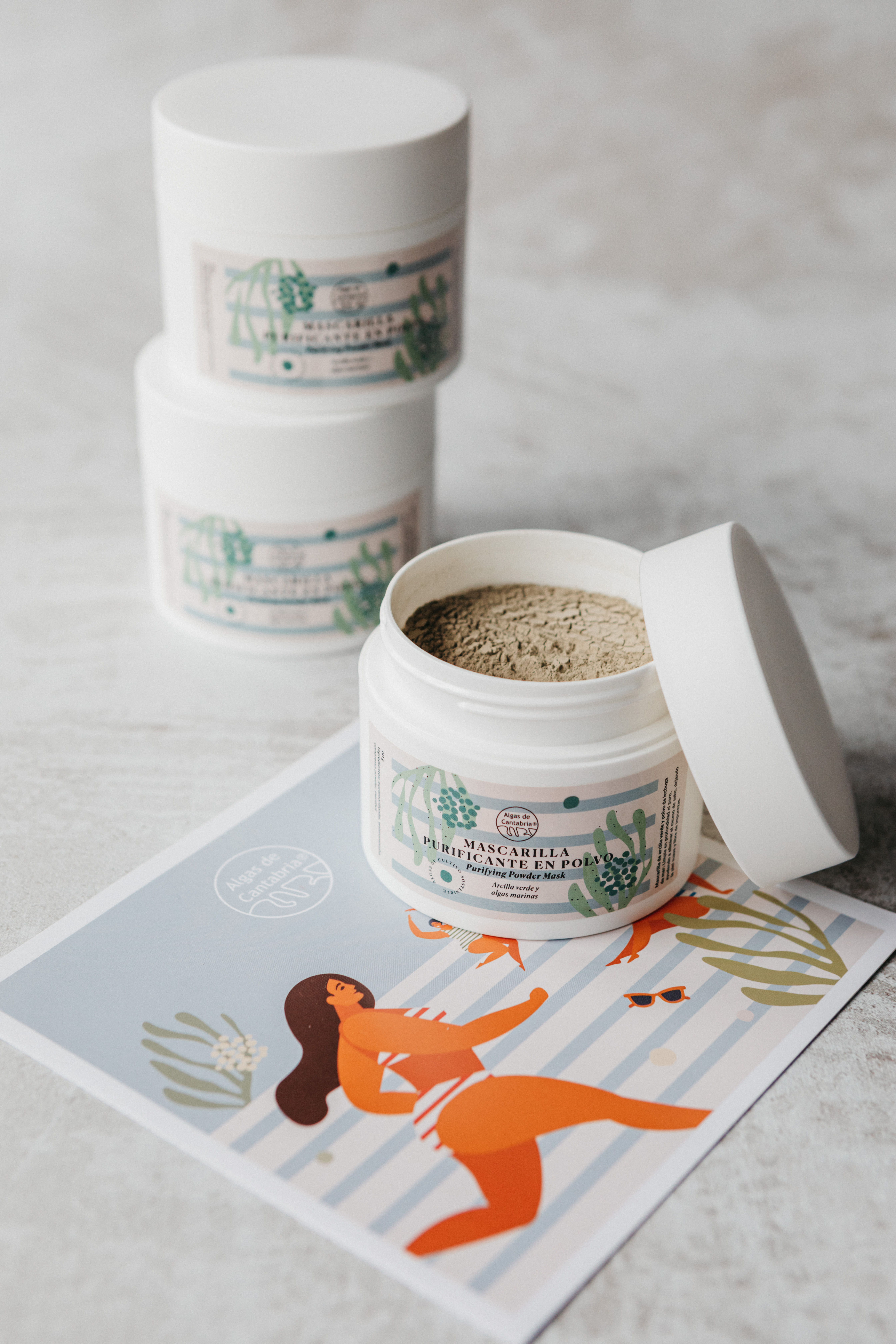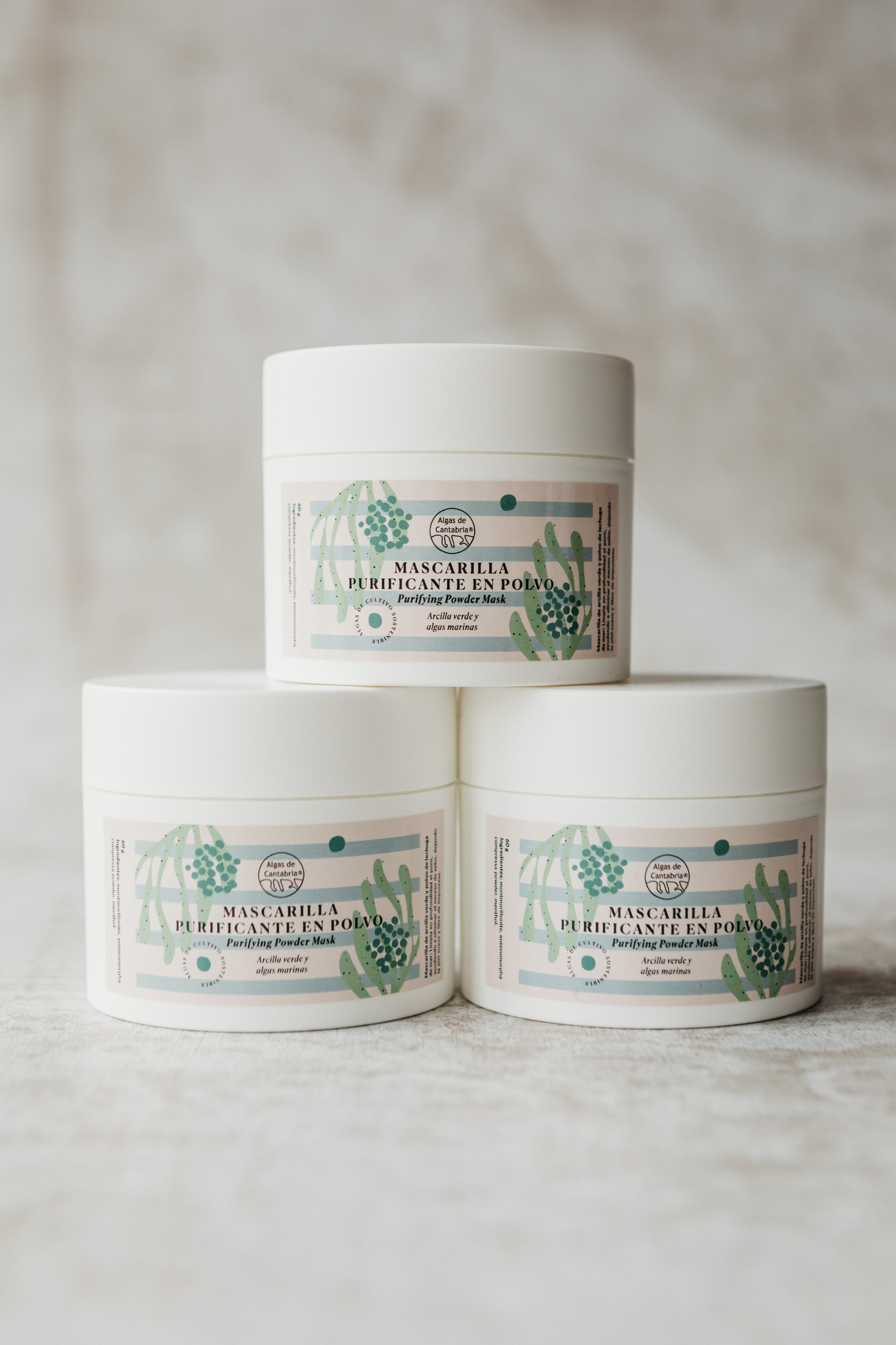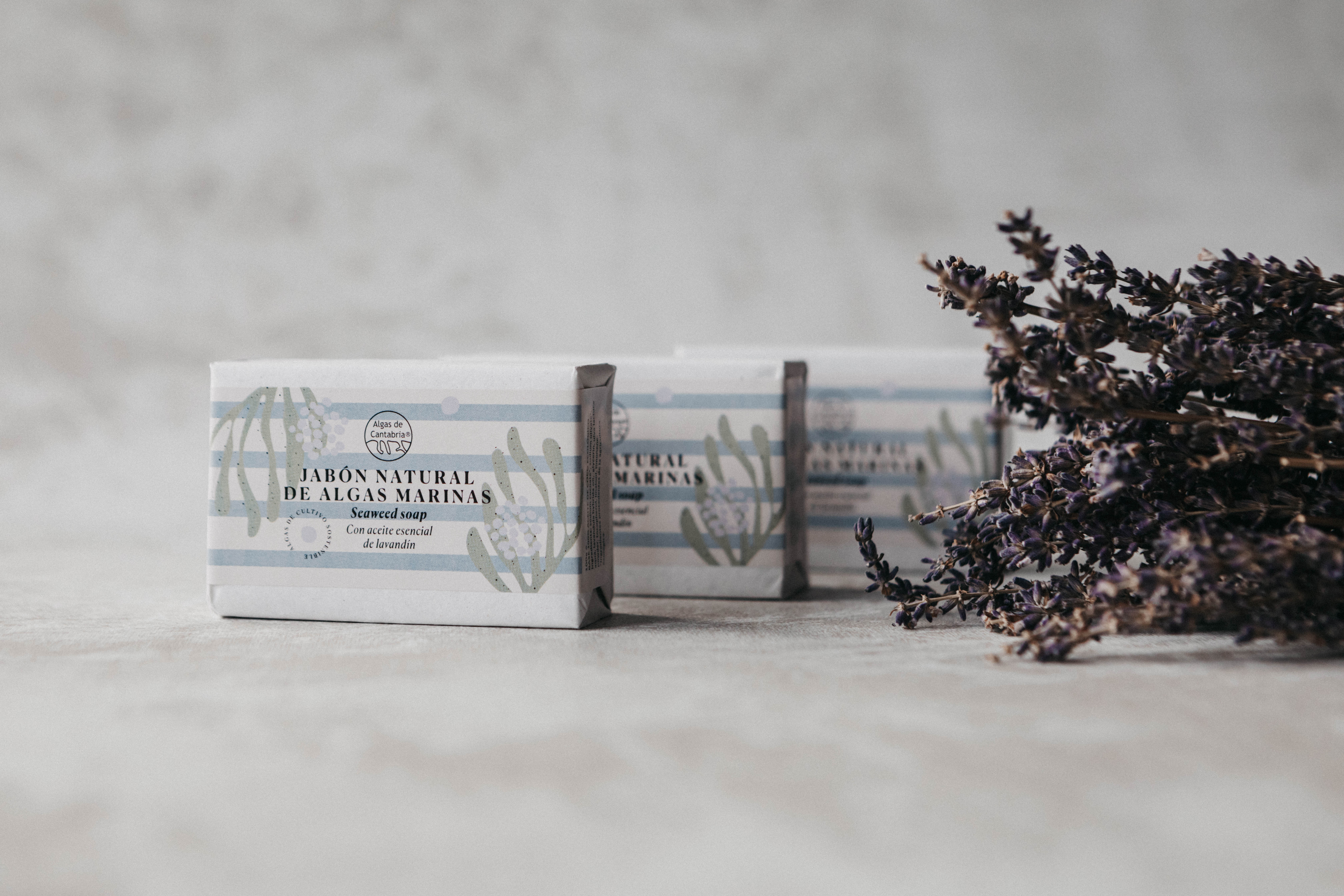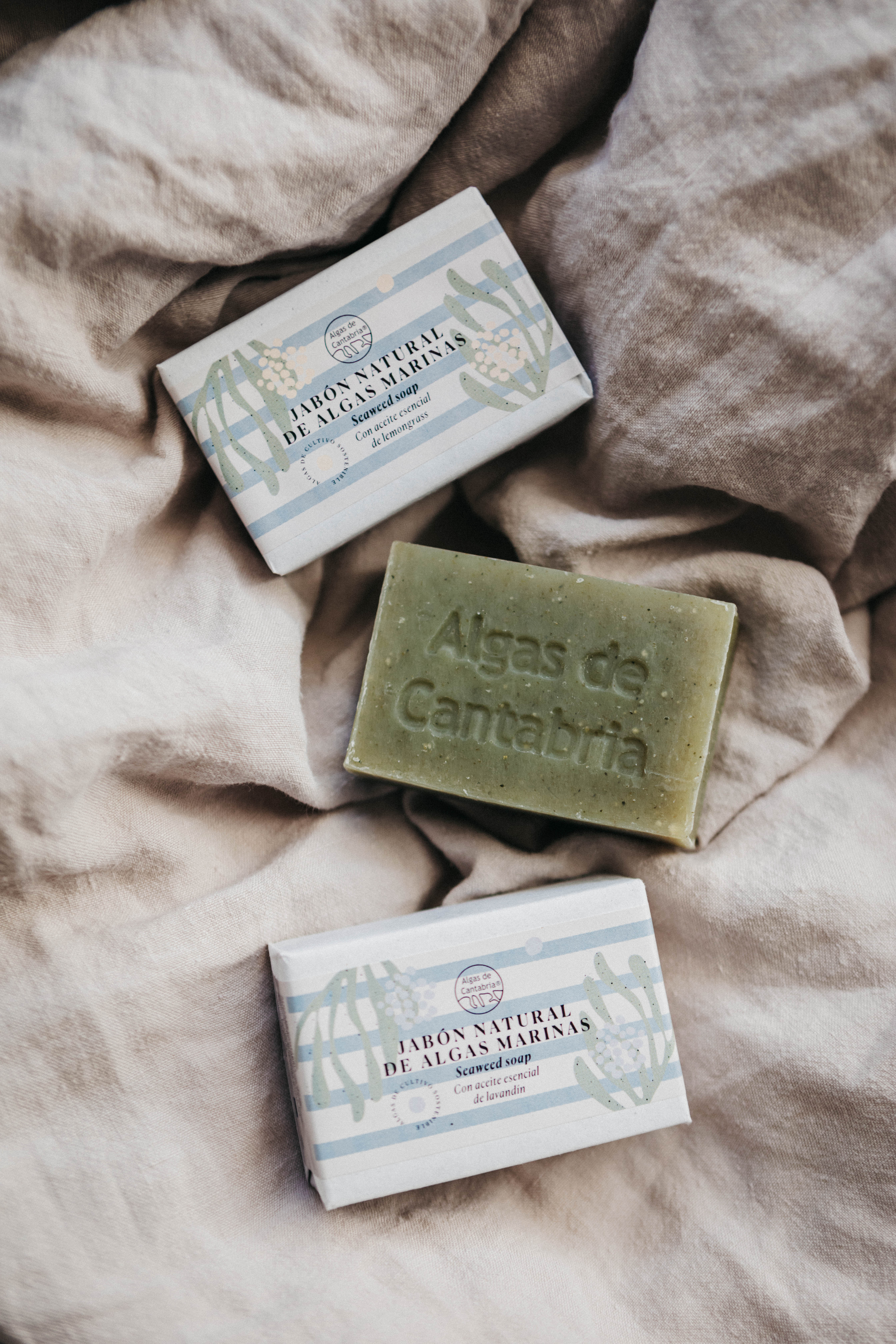 Sus primeros productos lanzados al mercado son los Jabones de algas marinas y la Mascarilla purificante en polvo.
