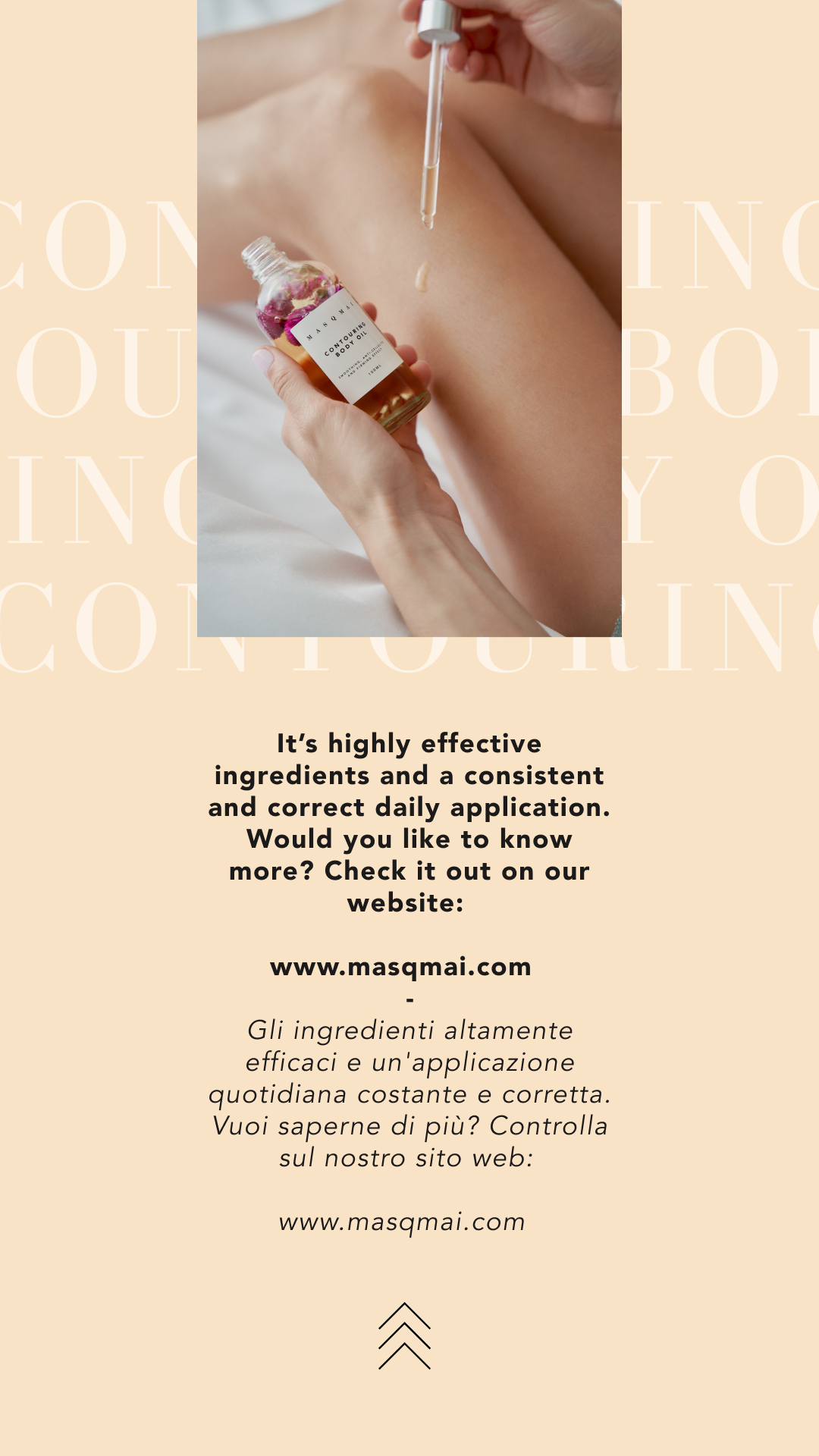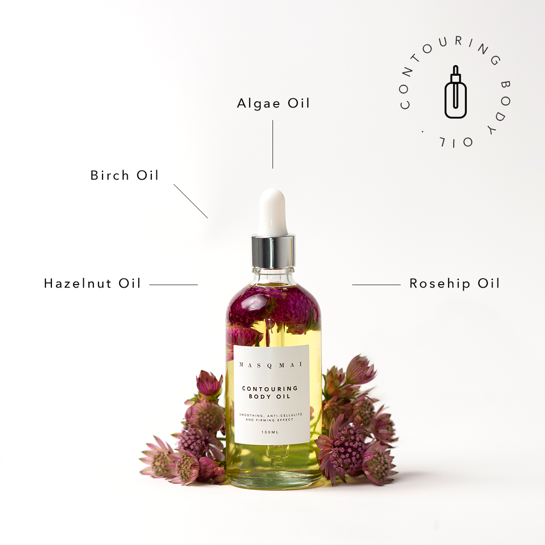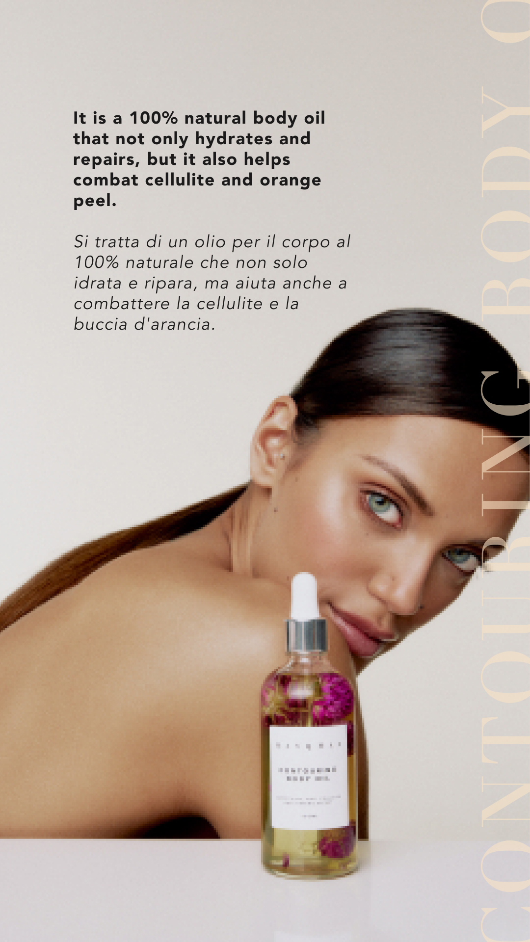 Contouring Body Oil es un aceite corporal de origen 100% natural que contiene una alta composición de aceites naturales que ayudan a tonificar, remodelar e hidratar la piel.