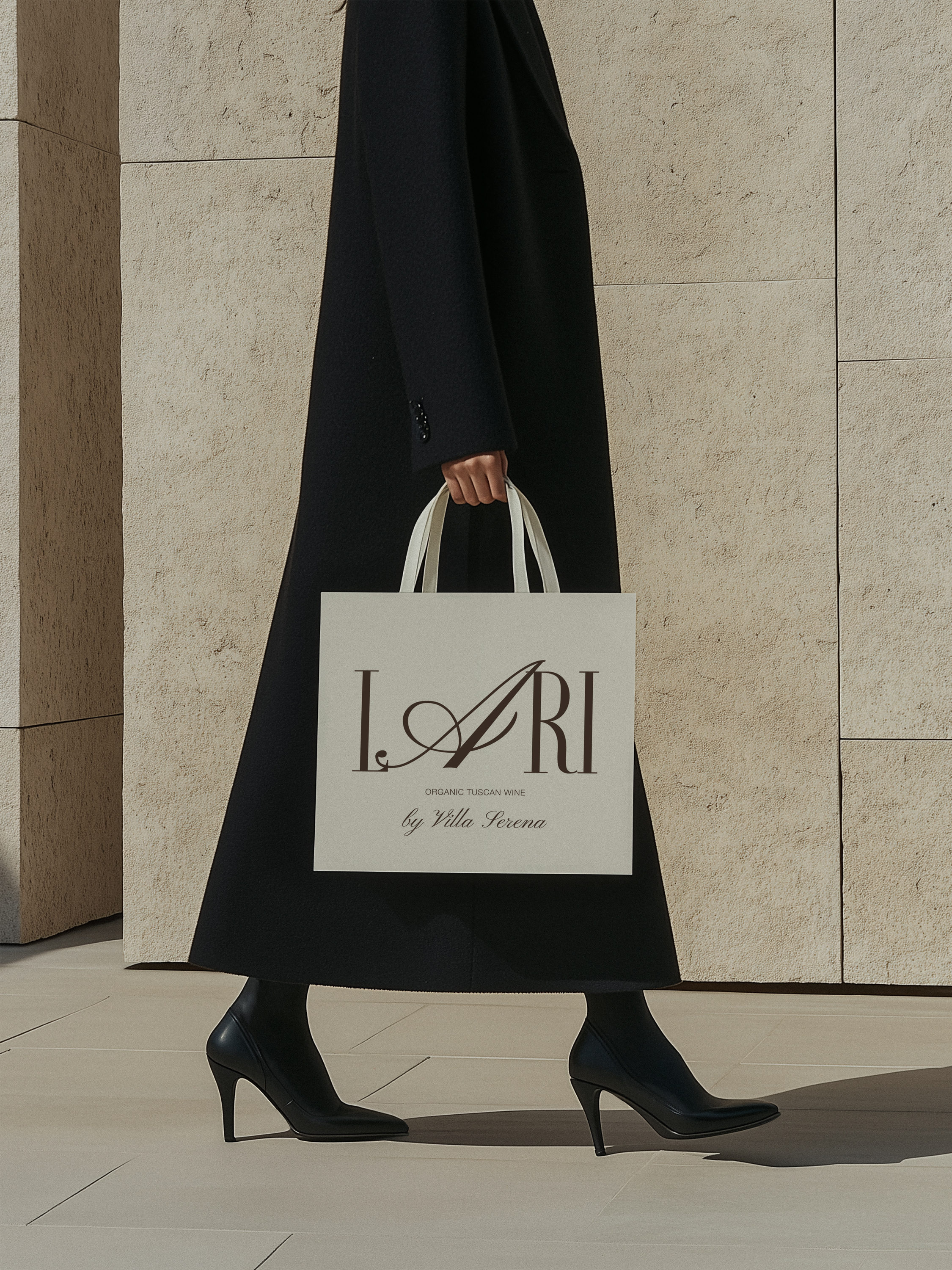 LARI se posiciona como un vino premium que no solo refleja la calidad de su contenido, sino también una historia y un estilo de vida ligados a la esencia toscana. Una marca que comunica elegancia, autenticidad y sofisticación duradera, con un universo visual preparado para destacar en el competitivo sector del vino de alta gama.