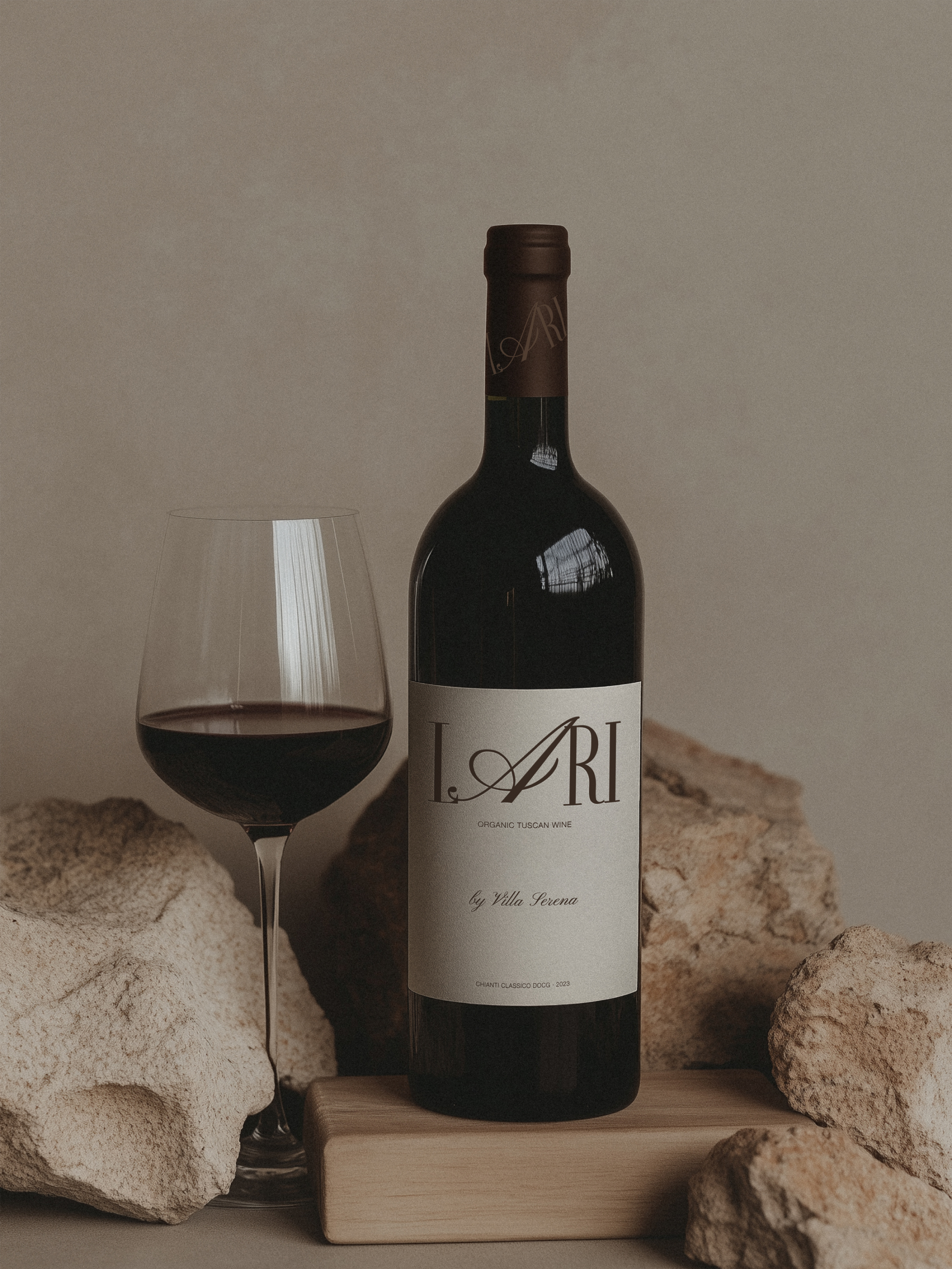 LARI es un Chianti Classico DOCG nacido en las colinas de la Toscana, con una herencia vinícola que se remonta a 1923. El objetivo del cliente fue crear una identidad distintiva que reflejara tanto el carácter orgánico del vino como su posicionamiento premium en mercados internacionales.
