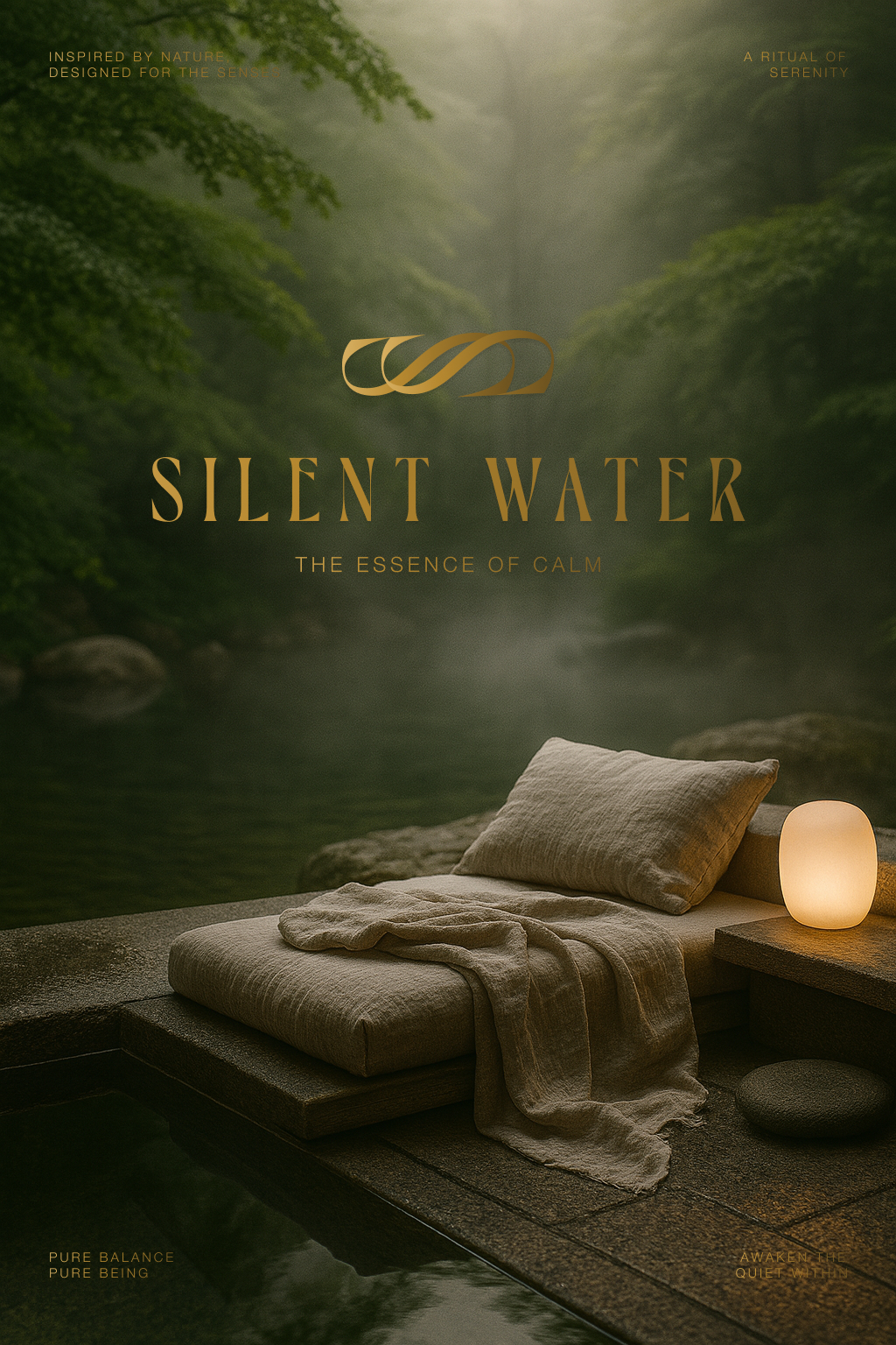 Silent Water es una identidad conceptual para un spa contemporáneo inspirado en la calma y la conexión con la naturaleza.